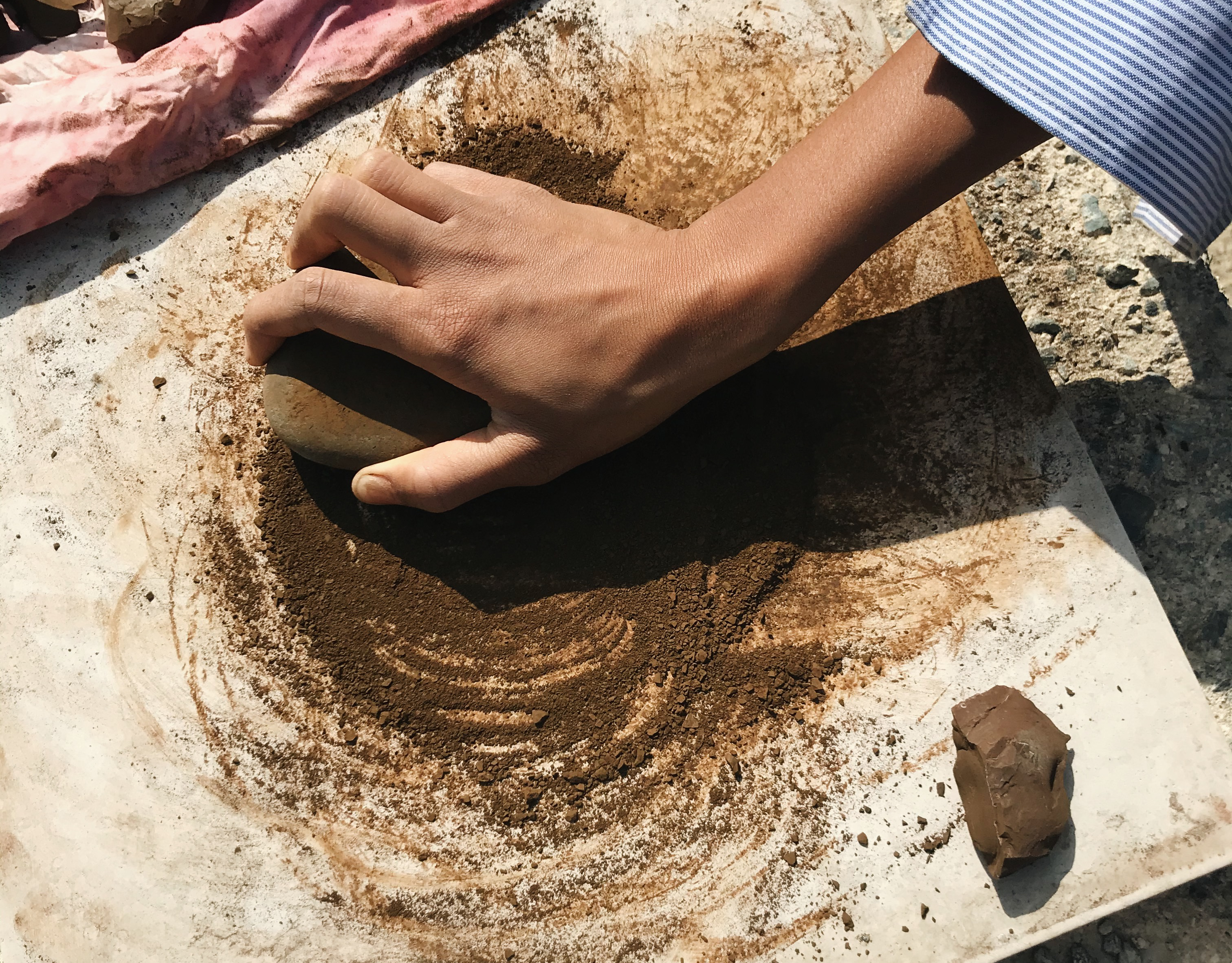 Hand-painted clay vessel. During a workshop with local artist Peter Bird, I chose to depict an interpretation of the birth of Aphrodite, incorporating motifs relevant to the local region throughout.